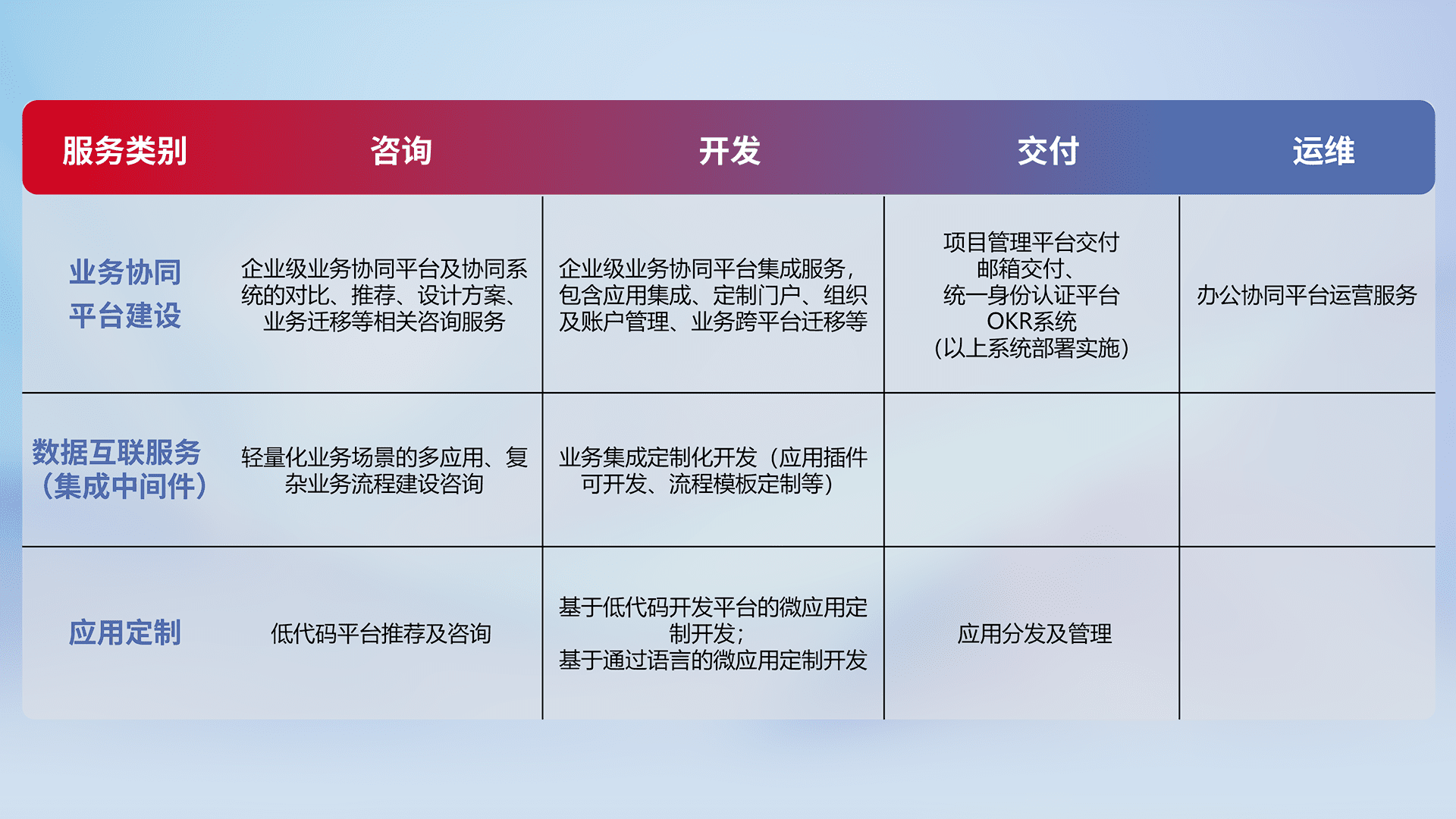 基于全代码低代码的数字化应用系统开发及交付,,,满足特定业务场景的应用开发及集成,,提升企业业务信息化及数字化能力。。。